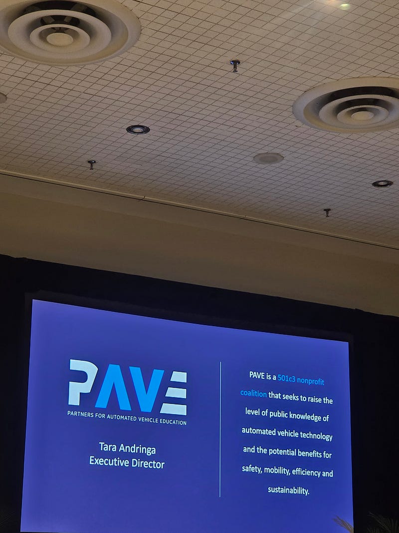 Tara Andringa, Executive Director at PAVE, shared some interesting research about whether people would ride in an autonomous vehicle. Taxi and/or ride share, 48 % said that they would not. However, the poll found that 60 percent said they would trust AVs if they understood the technology. 58 percent said that they would have greater trust in AVs if they could take a ride. PAVE educates the public by demystifying technology and highlighting different ways AVs might be used.